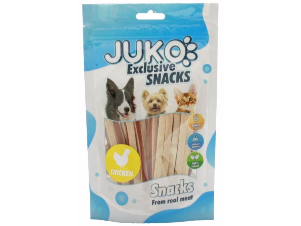Složení: kuřecí maso, rybí pasta, kukuřičný škrob, sorbitol, glycerin, rostlinný protein, sůl, sorbát draselný.