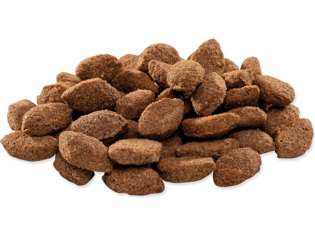 Lososový olej – přírodní zdroj omega-3 mastných kyselin pro zdravou kůži, lesklou a hustou srst psa a také působí preventivně proti kardiovaskulárním nemocem. 2 % přidaného lososového oleje v každém balení.