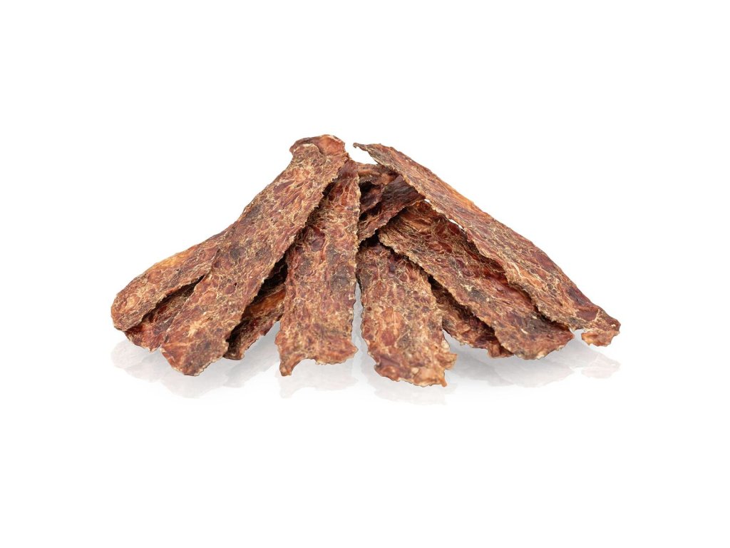 Kiddog Superpremium Snack je monoproteinový šetrně sušený produkt, 100% hovězí masové proužky bez obilovin a aditiv (neobsahují rostlinný glycerin)