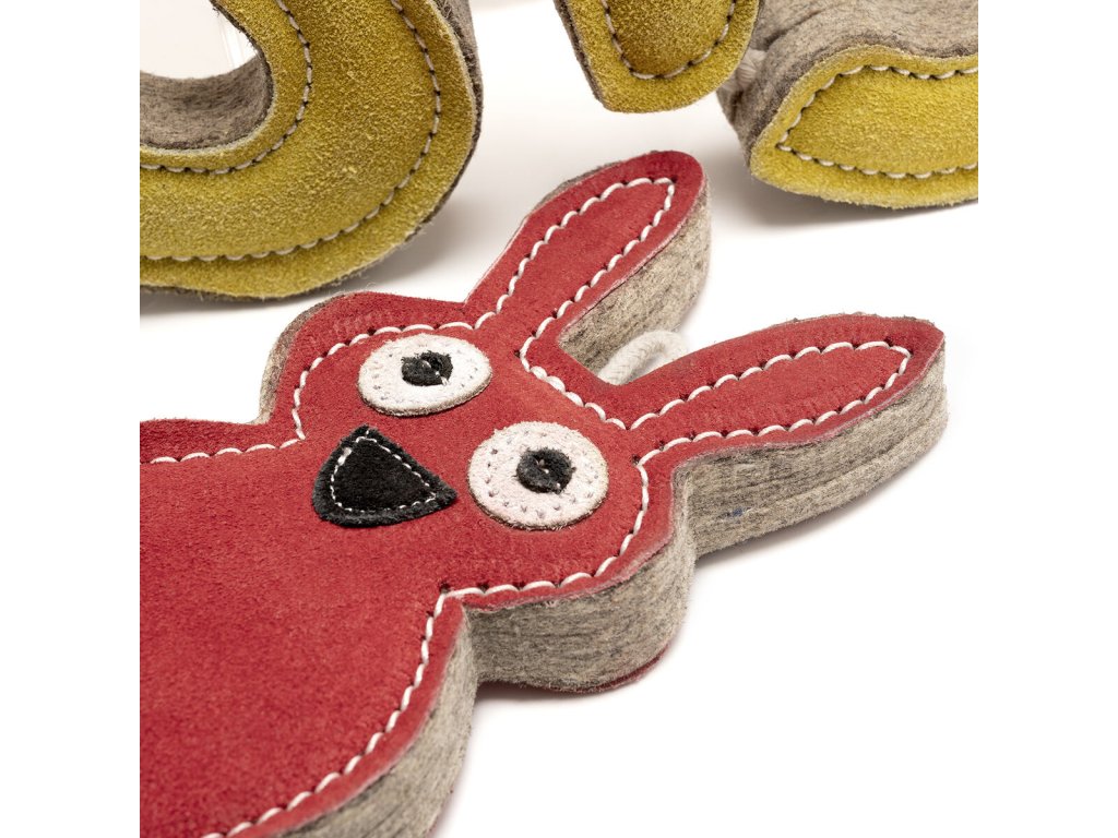 Hračky jsou vyrobeny z kvalitní buvolí kůže, která je příjemná na dotek a zároveň odolná. Po obarvení prošel materiál důkladným testováním dle evropské normy REACH – takže máte jistotu, že je bezpečný a zdravotně nezávadný.