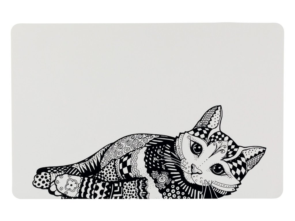 Prostírání Zentangle kočka 44 x 28 cm bílo/černé