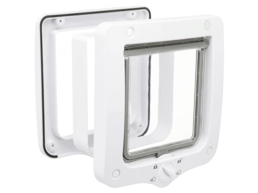 Průchozí dvířka pro kočku, s tunelem, 4-cestná, 20x22cm, bílá