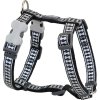 Postroj Red Dingo pro psy s obvodem hrudníku 30 - 44 cm. Šířka popruhu 12 mm. Vzor reflexní Lots a Bones. Barva černá.