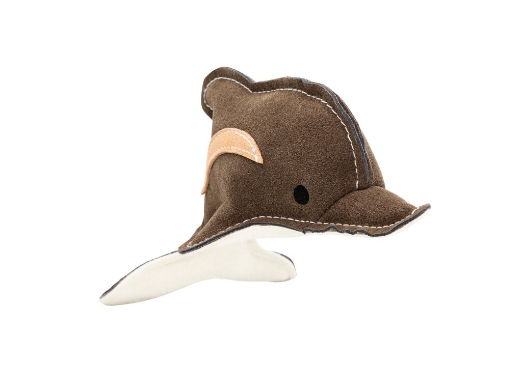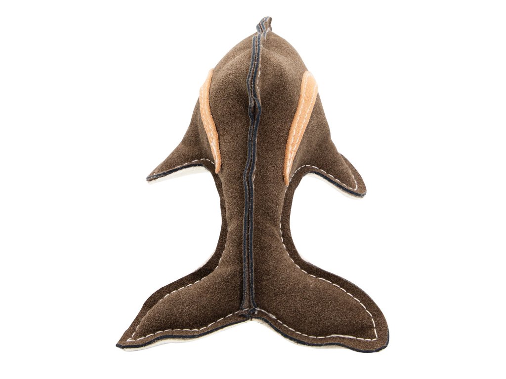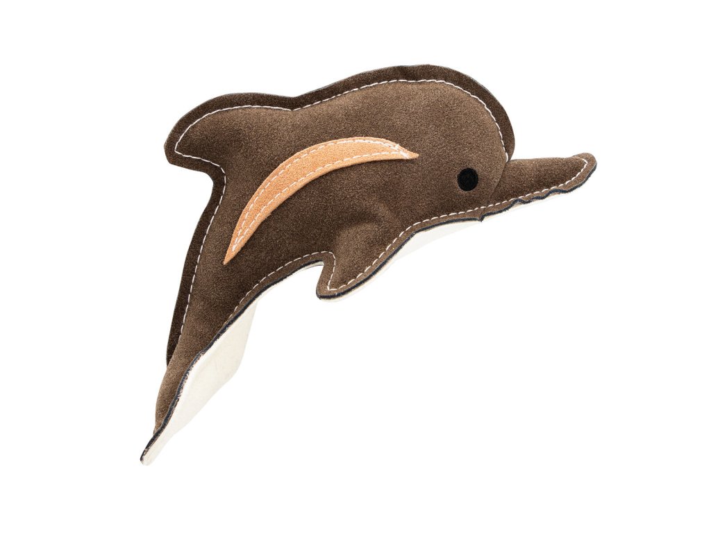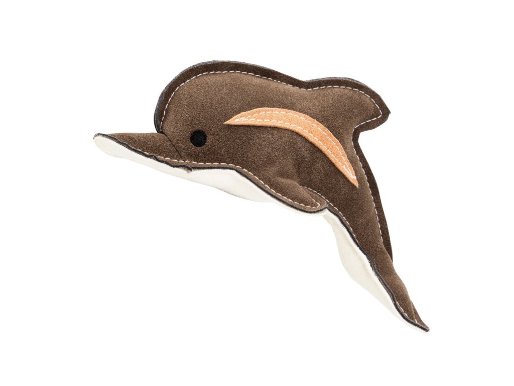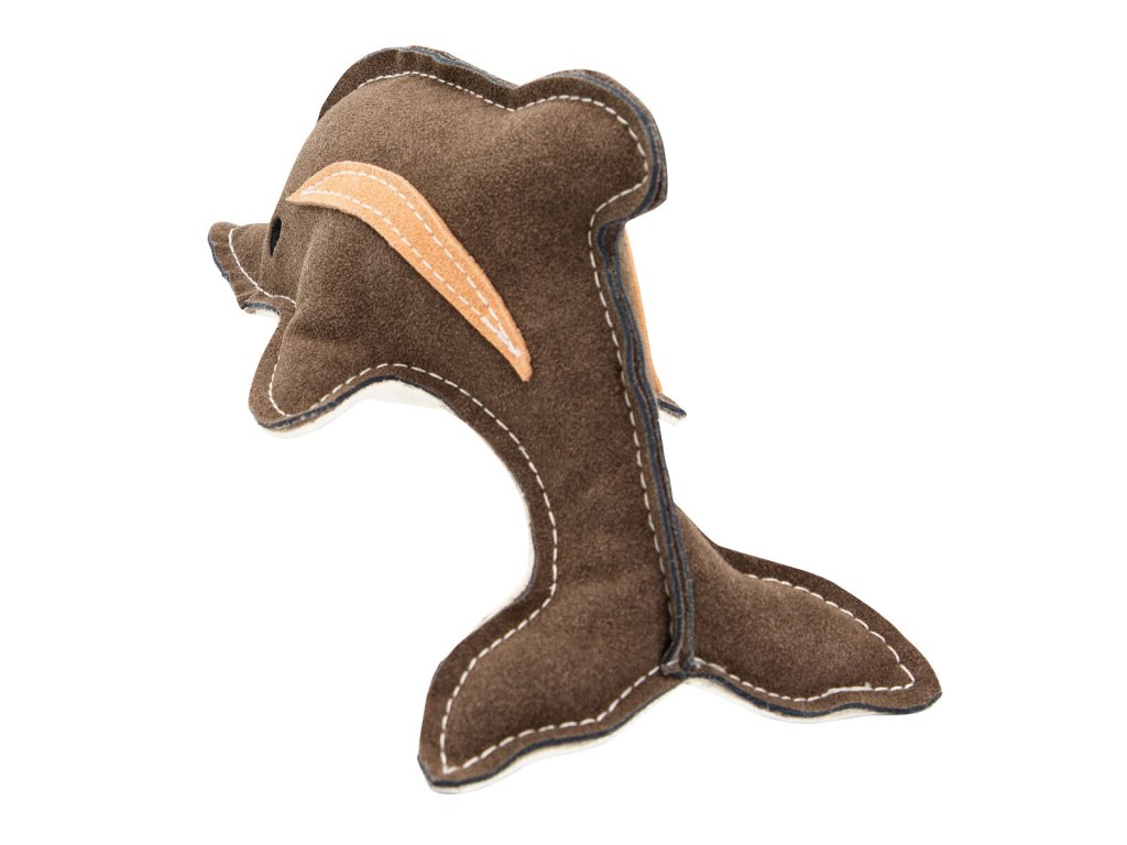 Delfín, 22 cm, kožená robustní hračka, HIPHOP DOG, hnědošedá/bílá
