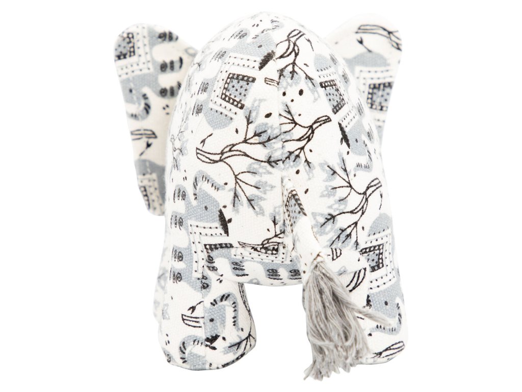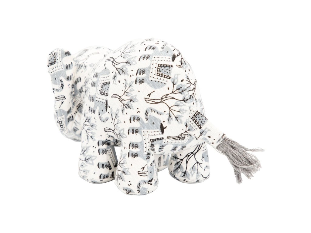 Slon, 23 cm, látková robustní hračka pro psy, HIPHOP DOG, bílá s potiskem