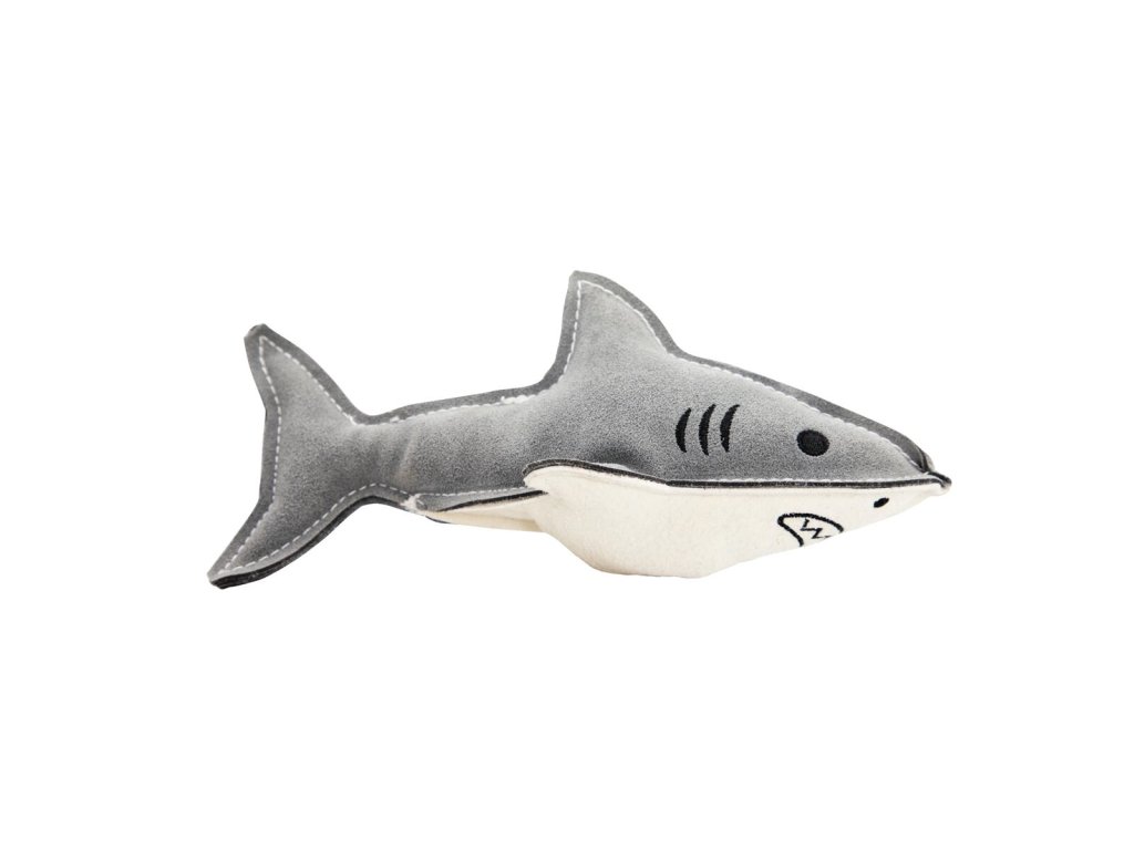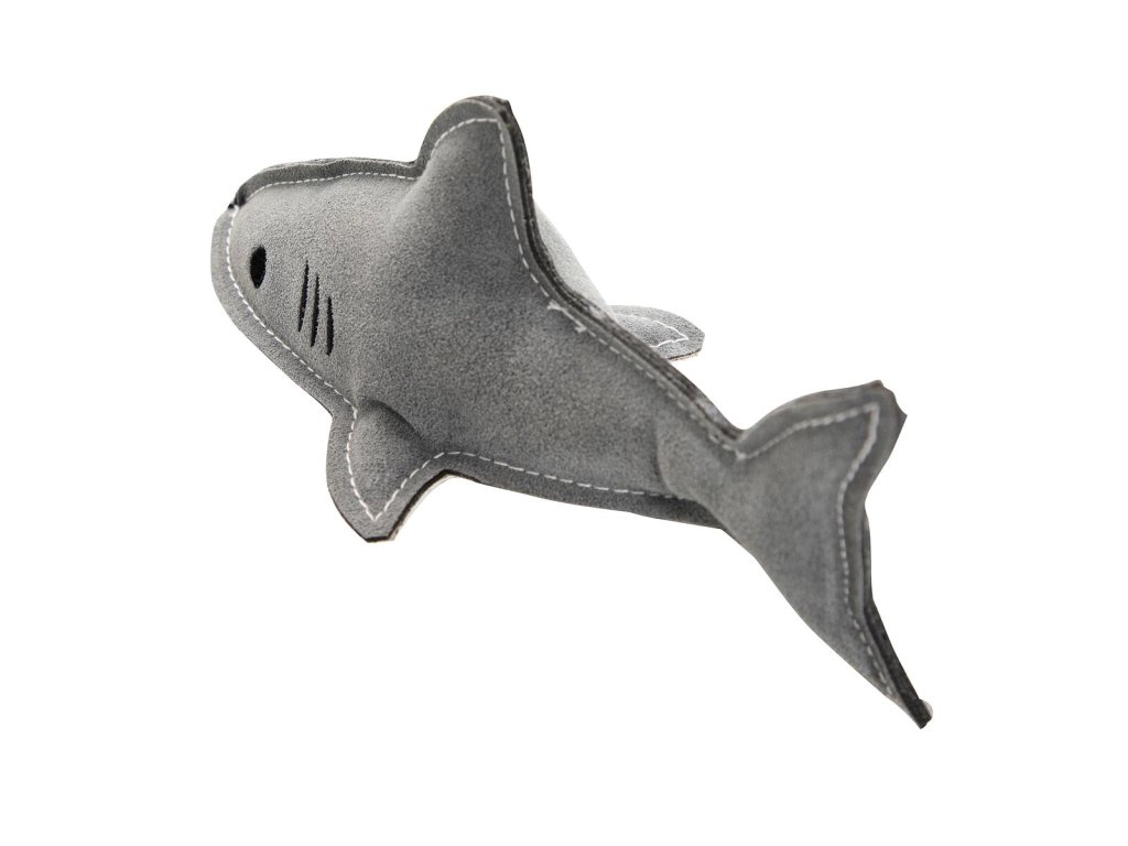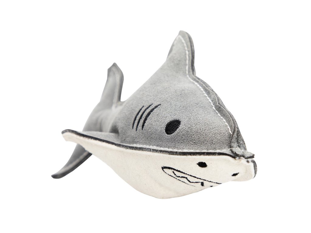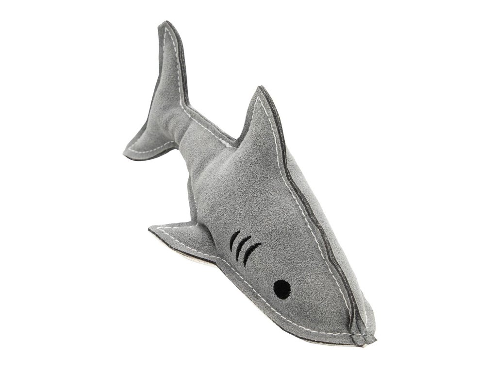 Žralok, 23 cm, kožená robustní hračka, HIPHOP DOG, šedá/bílá