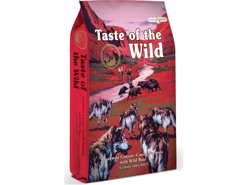 Americký divočák se odjakživa bál o své štětiny, když se proháněl skalnatým jihozápadním kaňonem. Mlsný vlk mu totiž nikdy nic nedaroval a v úzkém kaňonu lovil nekompromisně. Právě divočák, jakožto velmi unikátní zdroj divokých bílkovin a aminokyselin, je k zakousnutí v balení Taste of the Wild Southwest Canyon. Pro mlsné jazyky je přihozen ještě flák hovězího a sousto jehněte. Před obilovinami tu dostala přednost cizrna plná přírodních proteinů, vitaminů a minerálů. Pivovarské kvasnice poskytující nálož vitaminu B a skvěle přírodně zvýrazní chuť. Amerického divočáka ještě vyšperkovali sousedé z Kanady, kteří dodali omega-3 mastné kyseliny v podobě lněného semínka.