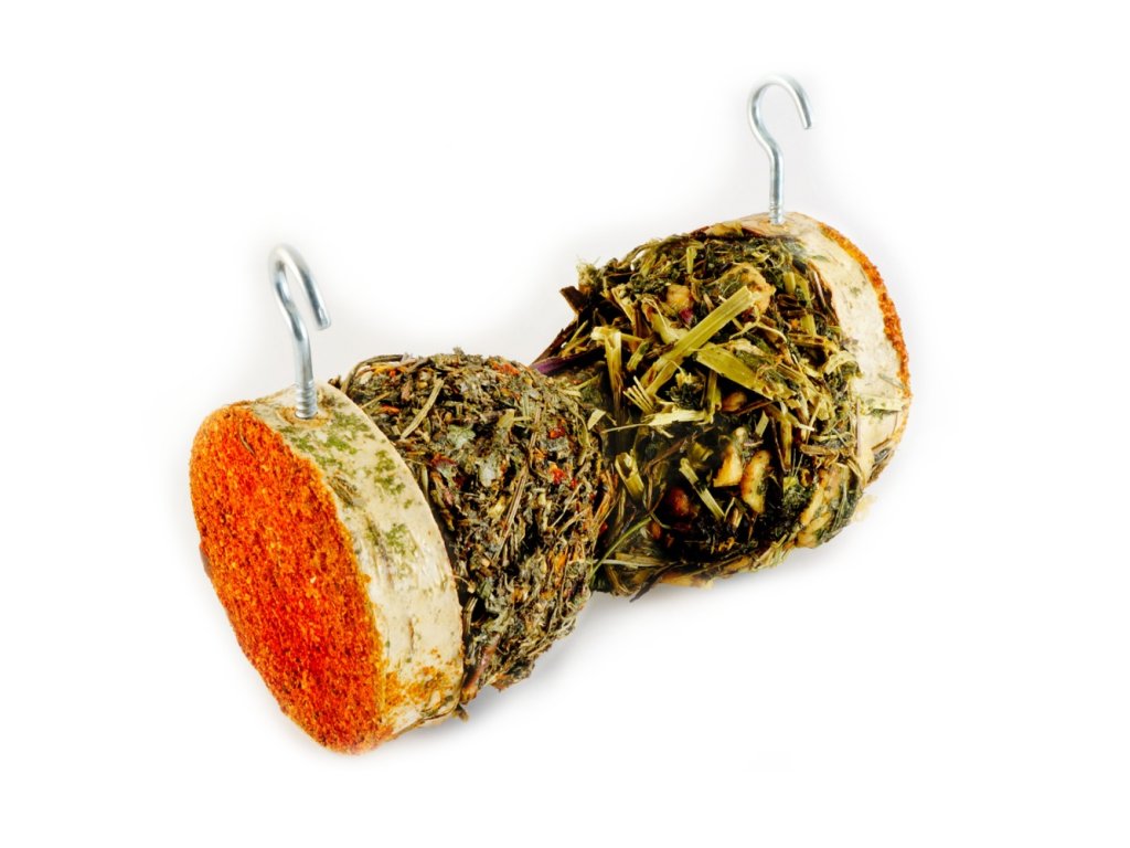 Toto přírodní mini krmítko je vhodné zejména pro králíky, morčata, činčily, osmáky, ale také křečky, potkany, myši a další hlodavce. Krmítko je kombinací pamlsku a materiálu k broušení hlodavých zubů. Vyjídáním směsi zeleniny a bylin se zvíře zabaví a pochutná si. Samotné krmítko může posloužit jako vítaný materiál k okusu.