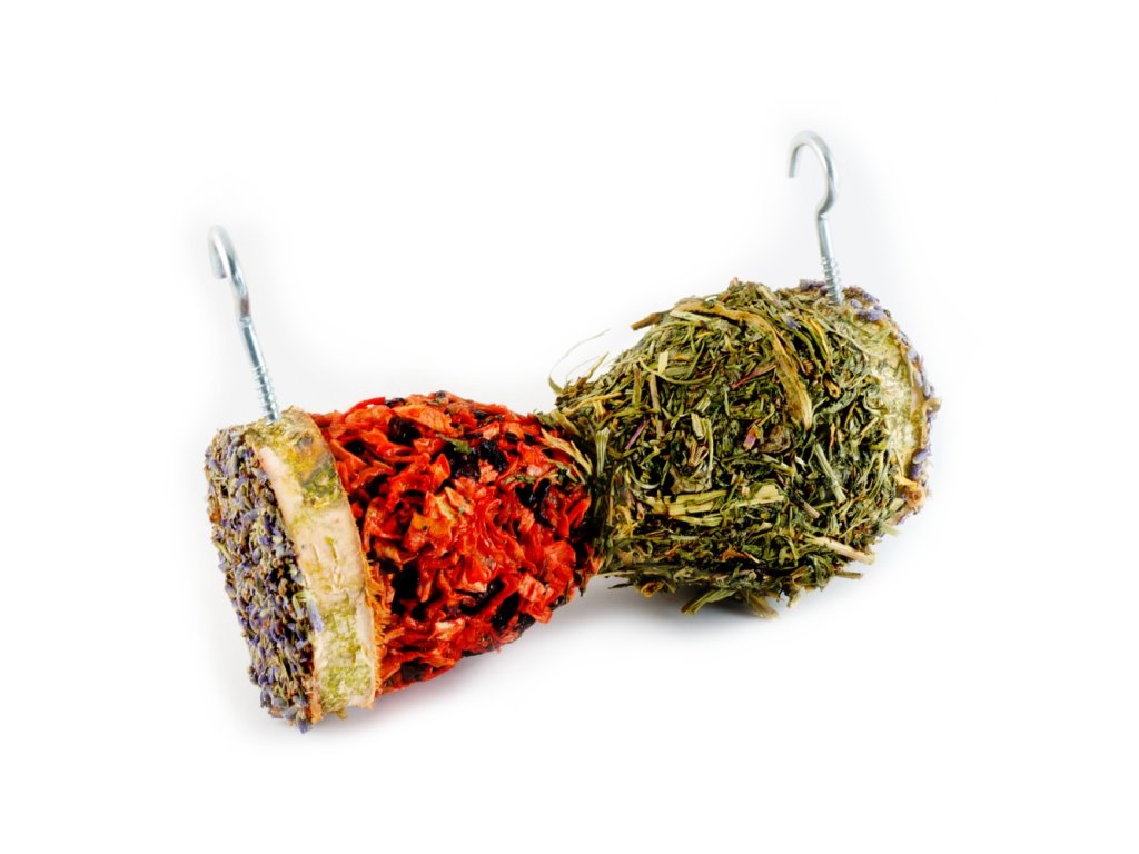 Směs chutné zeleniny a bylinek ve větvi z břízy podnítí vaše zvíře k aktivitě.